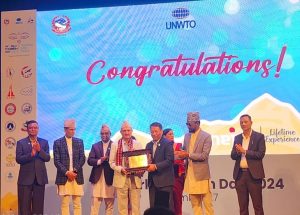 काठमाडौं । नेपाल वायुसेवा निगम धेरै विदेशी मुद्रा आर्जन गर्ने एयरलाइन्सको रुपमा सम्मानित भएको छ । ४५ औँ विश्व पर्यटन दिवसको अवसरमा शुक्रबार संस्कृति, पर्यटन तथा नागरिक उड्डयन मन्त्रालयद्वारा काठमाडौंमा आयोजित एक कार्यक्रममा निगमलाई सम्मान गरिएको हो ।